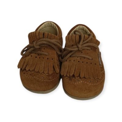 Os nossos sapatos carneira sem sola são fabricados em Portugal com materiais de grande qualidade: pele de camurça no exterior, muito flexível, transpirável e cómoda, forro interior em pele para garantir a correta transpiração do pé e sola de borracha antiderrapante para que as crianças possam dar passos seguros sem escorregarem ou caírem. A pala de franjas é removível, o que torna este sapato bastante versátil, tanto para meninos como para meninas.