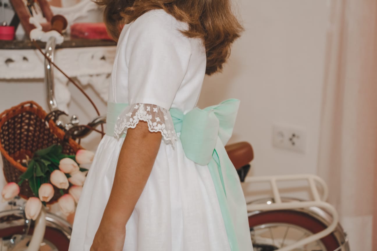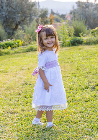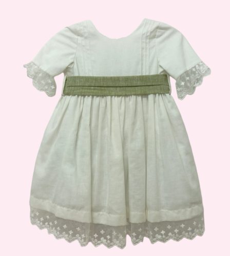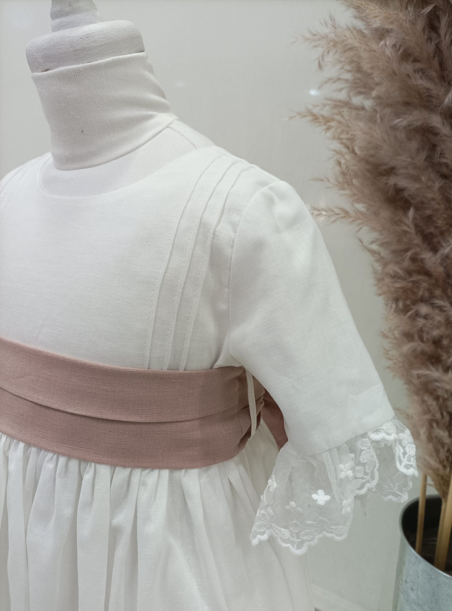 O vestido de cerimónia “Camomila” é confecionado em linho e possui uma faixa na cintura e renda nas mangas e na saia. Com fecho nas costas e forrado em algodão. Tem a possibilidade de escolher a cor da faixa. É uma opção elegante e versátil para ocasiões especiais!